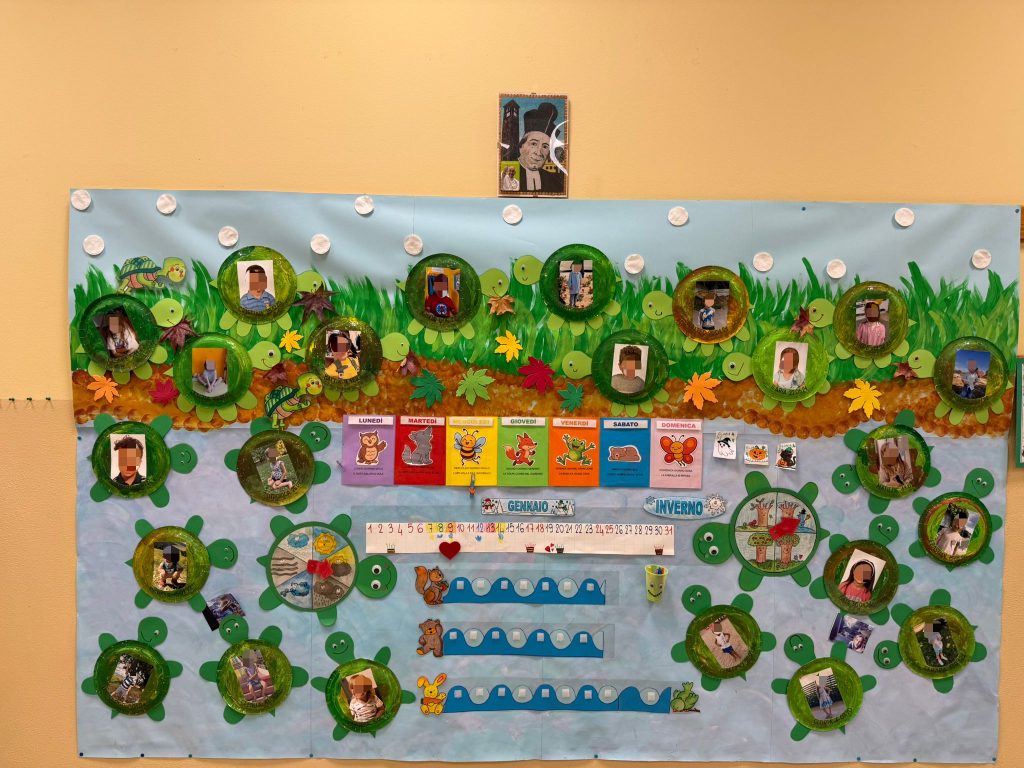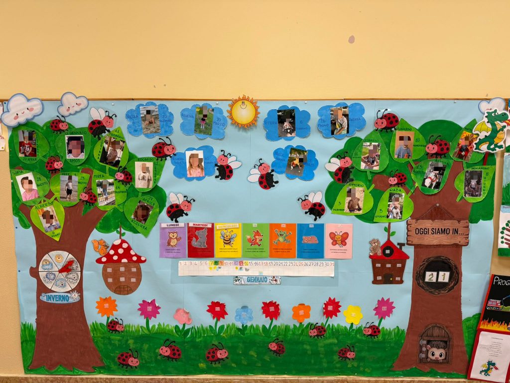 Vi è poi una stanza laboratoriale attrezzata di lavagna interattiva per svolgere attività e laboratori: biblioteca, inglese… Durante il corso dell’anno, sulla base dei Progetti Didattici elaborati dal corpo docente, vengono svolti dei laboratori didattici. Essi prevedono il coinvolgimento dei bambini di tutte le sezioni in gruppi di lavoro eterogenei.