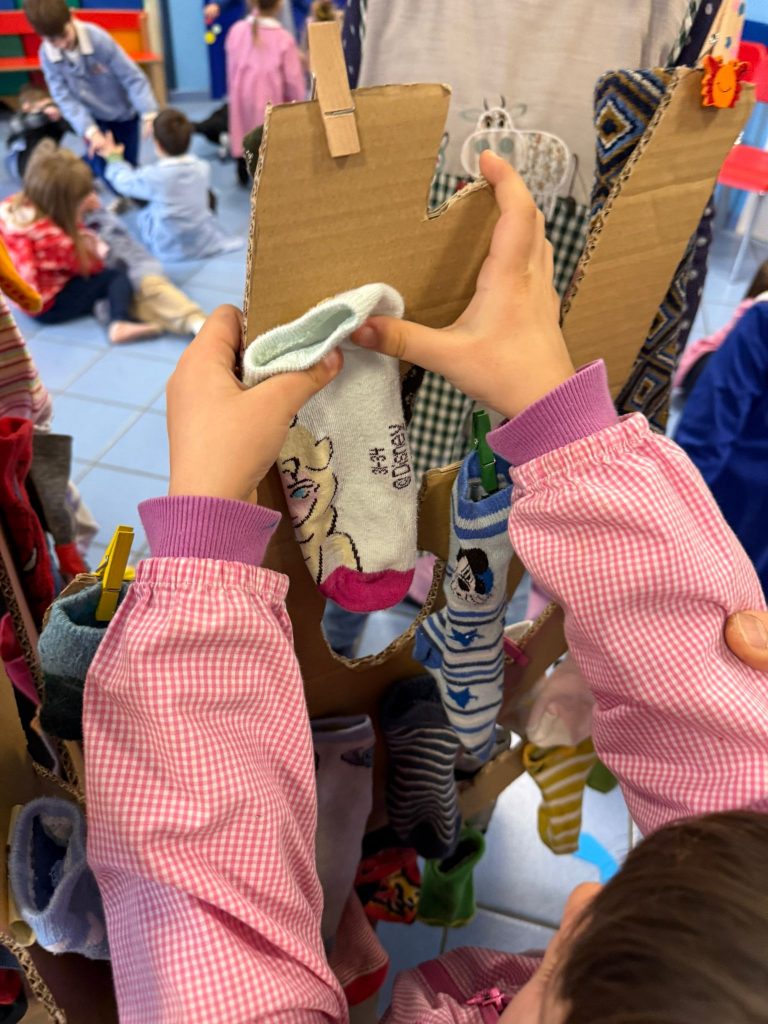 Fin dal mattino i bambini sono arrivati a scuola con calzini diversi per colore, forma e fantasia. C’era chi indossava righe e pois, chi supereroi e fiorellini: un’esplosione di allegria che ha riempito le aule di sorrisi e curiosità. In circle time abbiamo osservato i nostri piedi e ci siamo accorti che, anche se i calzini non erano uguali, stavano benissimo insieme. È stato un modo semplice per parlare di inclusione e per capire che le differenze non ci dividono, ma ci rendono più interessanti.