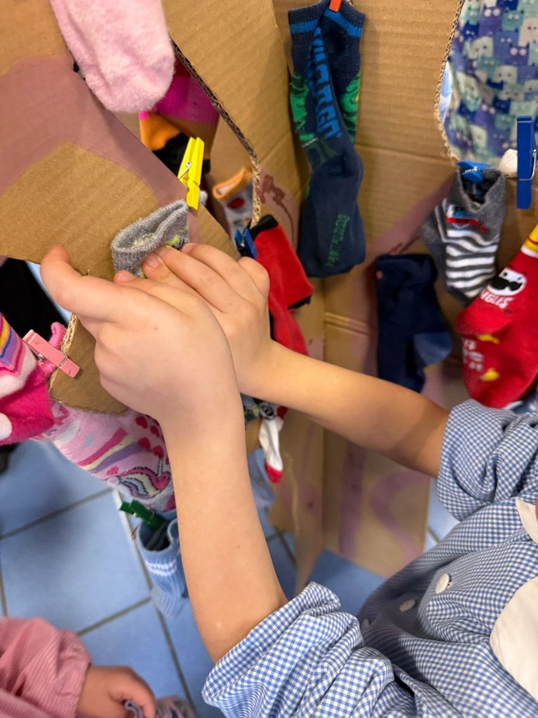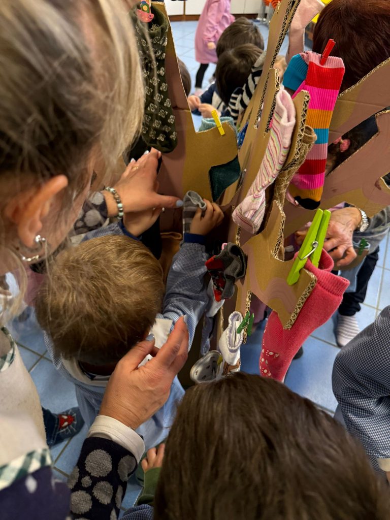L’attività più emozionante della giornata è stata quando abbiamo appeso i nostri calzini a un albero, trasformandolo in un simbolico “albero dei calzini spaiati”. Vederli tutti diversi ma uniti è stato un momento di grande entusiasmo e orgoglio.